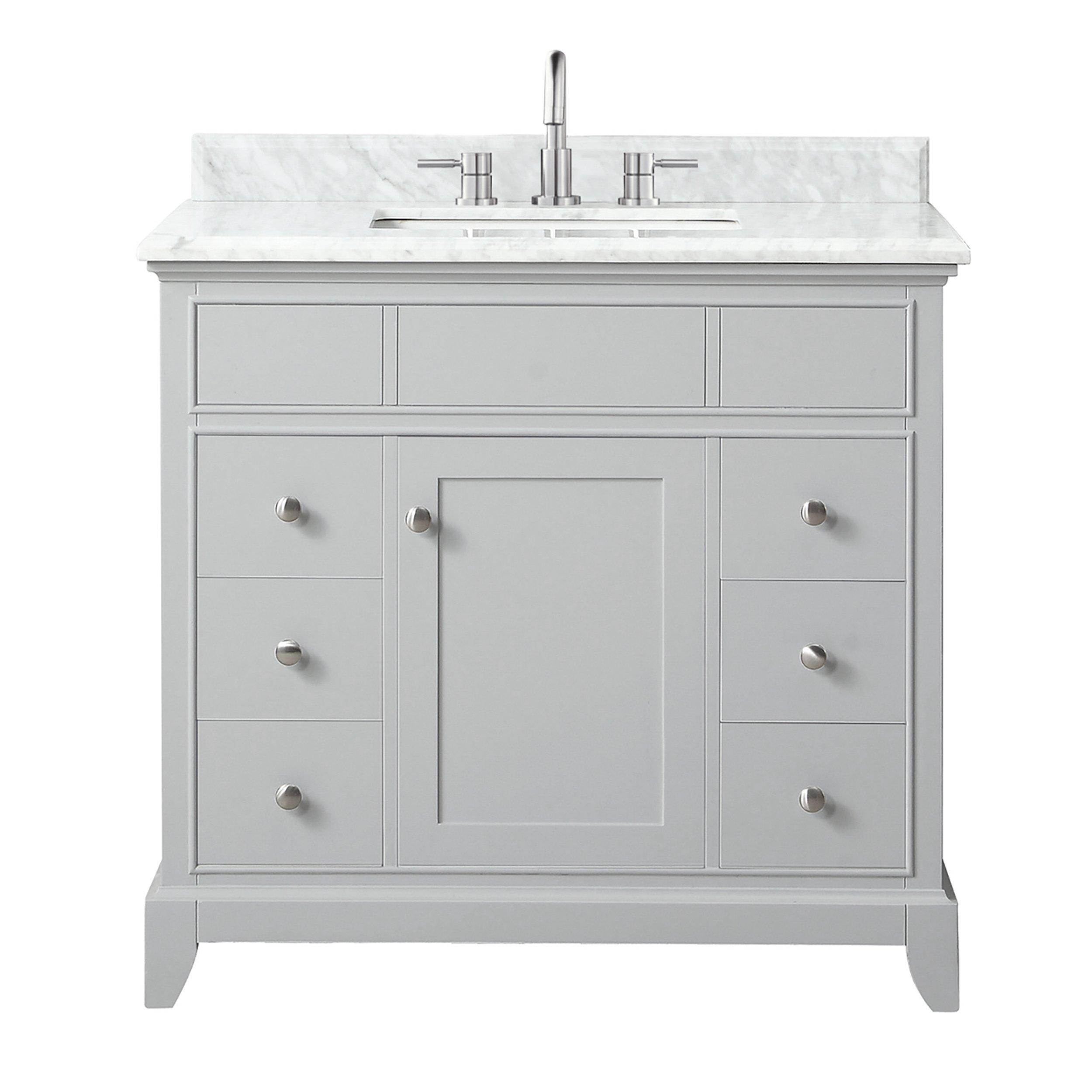 Aurora 73 In Vanity With Carrara Marble Top 73in 100610344 Floor And Decor from i8.amplience.net Give your bathroom a light and airy feel with this vanity with top from the ellenbee collection. The gray frame with a bead board design evokes the modern charm of a country cottage and pairs perfectly with bead board walls and a variety of paint colors. Marble is easily etched by acidic materials, such as lemon and certain cleaning products. 49''x22 bathroom stone vanity top engineered stone carrara white marble color with rectangle undermount ceramic sink sanswood 4.5 out of 5 stars (198) $ 409.00. For this reason, marble isn't the best choice for children's bathrooms. Shop marble top bathroom storage cabinet from pottery barn. Marble top cabinet bathroom on the site are created by the finest craftsmen and even the minute details are intricately taken care of. Featuring a wood frame, marble top a top drawer and a tempered glass door on the bottom, it offers elegance and sufficient storage space for your essentials.
